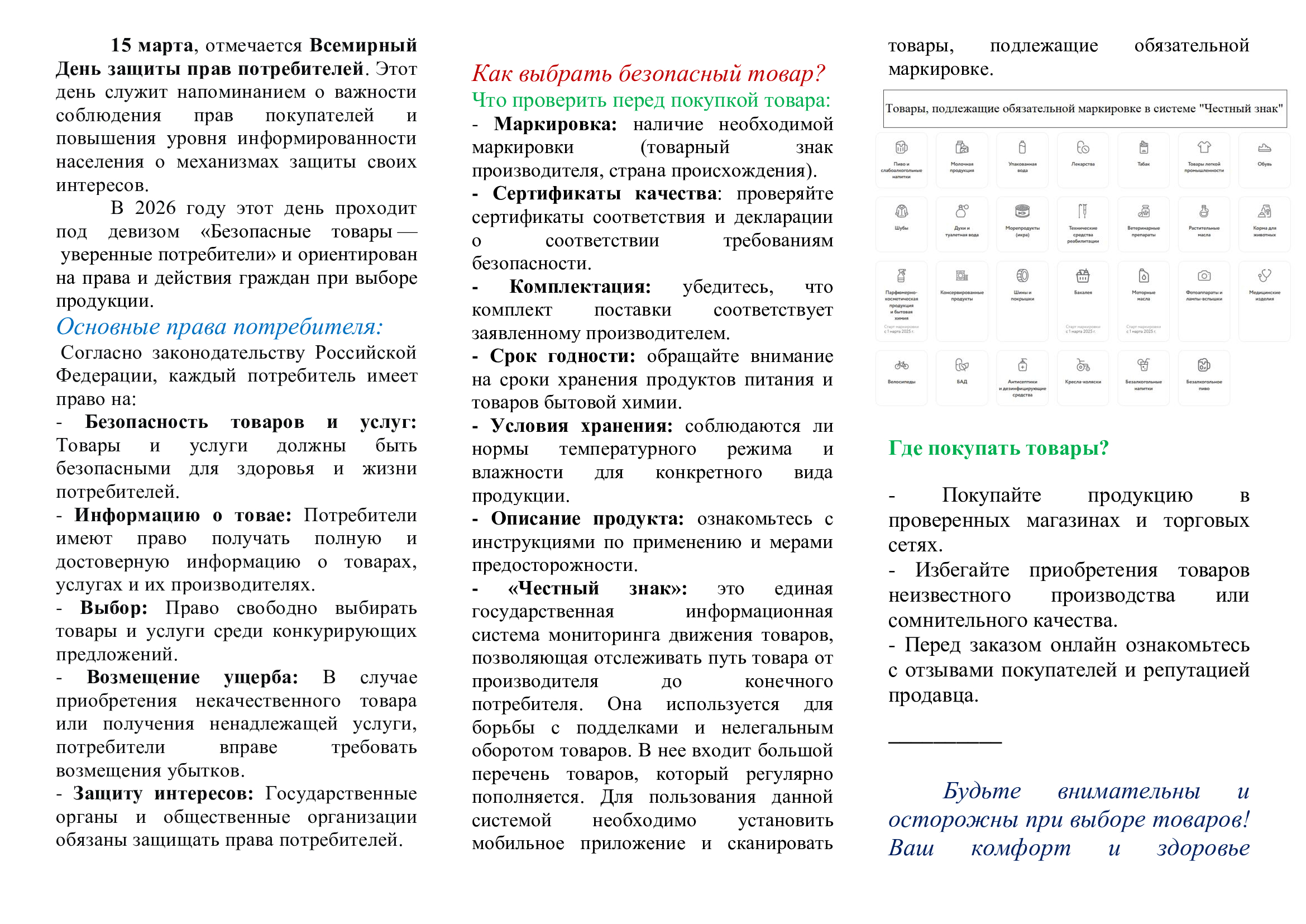 Ежегодно 15 марта, начиная с 1994 года, в Российской Федерации широко отмечается Всемирный день прав потребителей. В 2026 году празднование Всемирного дня потребителей пройдет под девизом – «Safe Products, Confident Consumers» - «Безопасные товары, уверенные потребители». Это важная инициатива, направленная на привлечение внимания к вопросам безопасности продукции в эпоху онлайн-торговли и глобализации рынков.