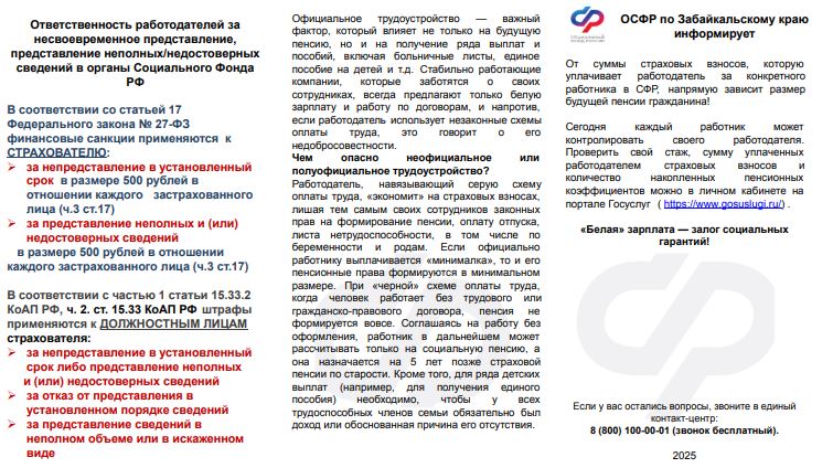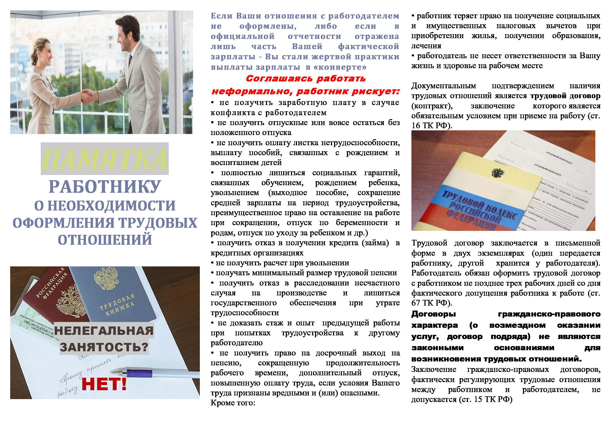 Информационные буклеты о неформальной занятость
