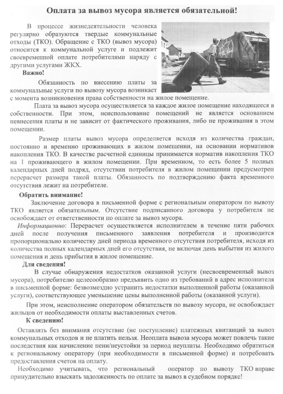 Оплата за вывоз мусора является обязательной!