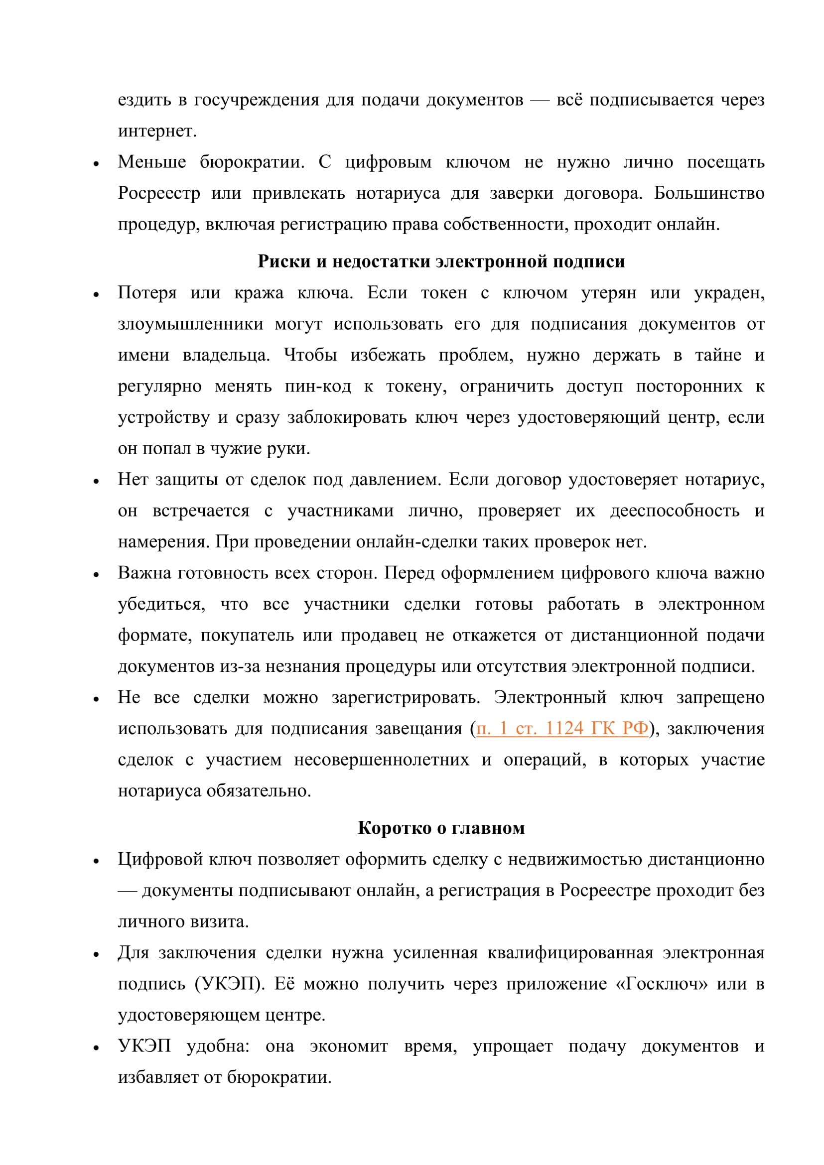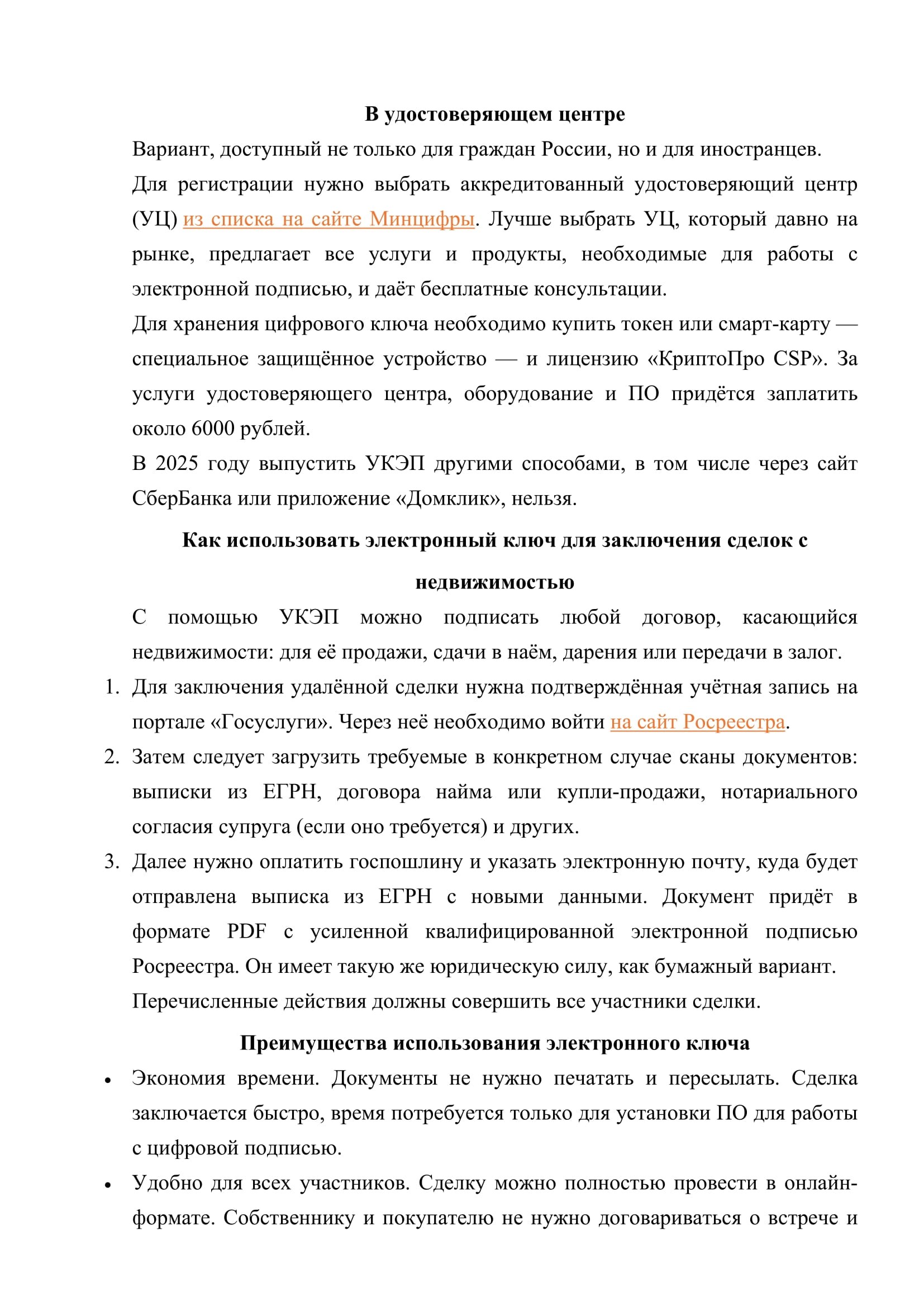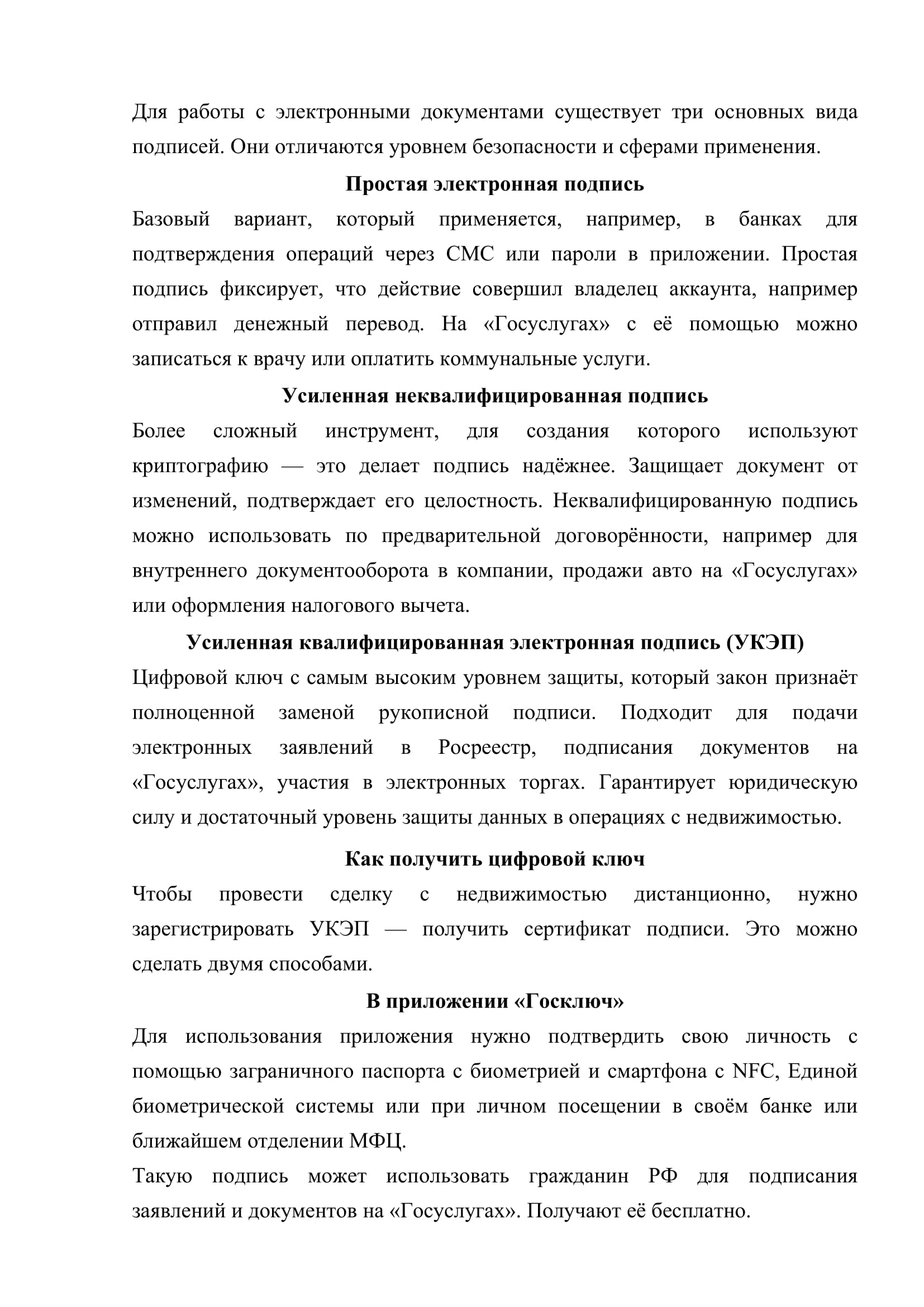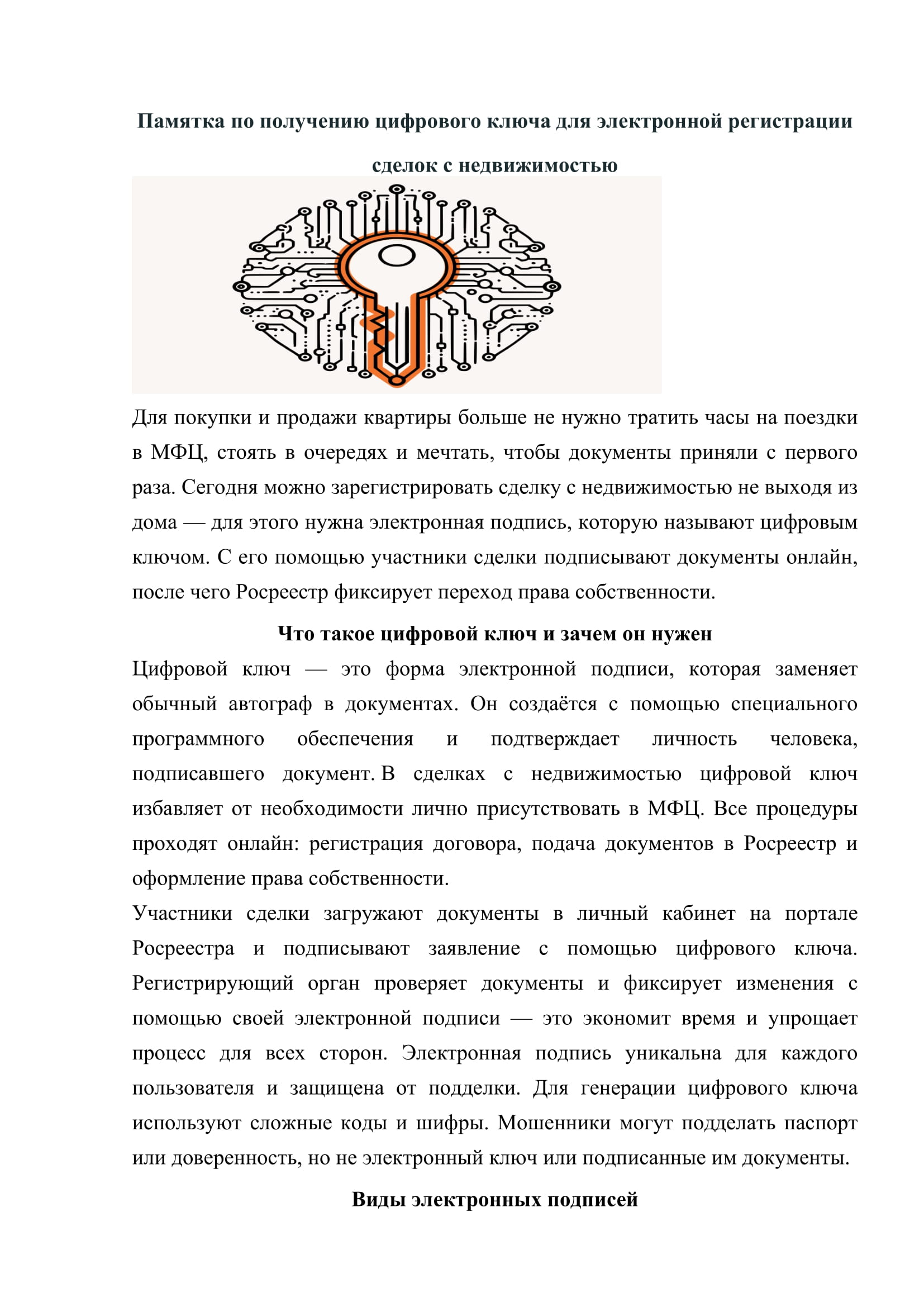 Памятка по получению цифрового ключа для электронной регистрации сделок с недвижимостью