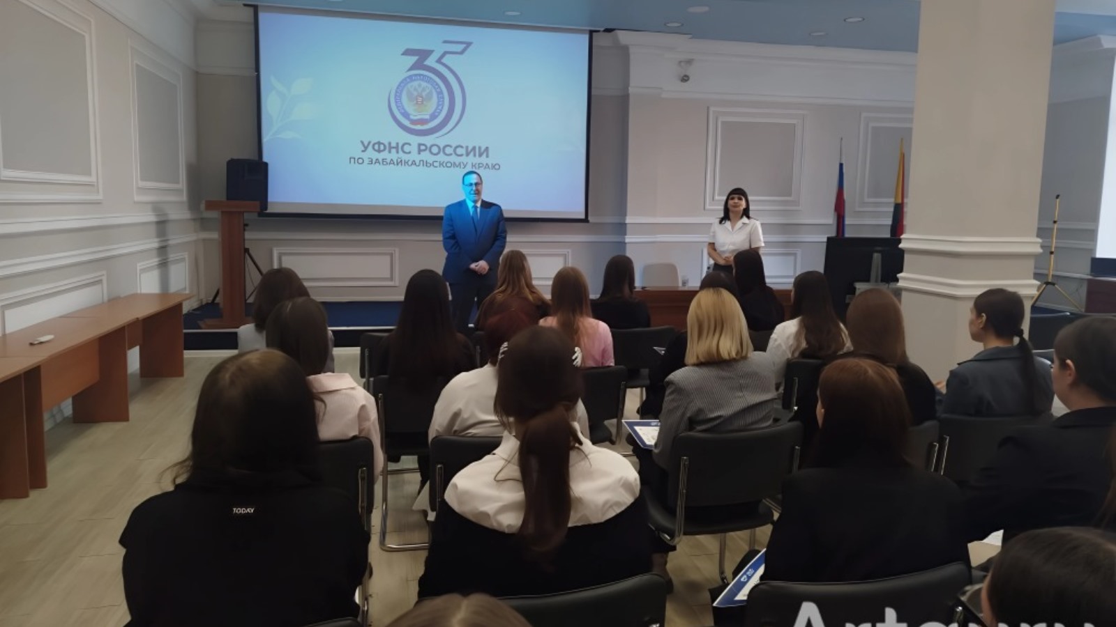 Приветствовал учащихся руководитель Управления Сергей Ефремов, который рассказал о важности уплаты налогов и карьерных возможностях на государственной гражданской службе.